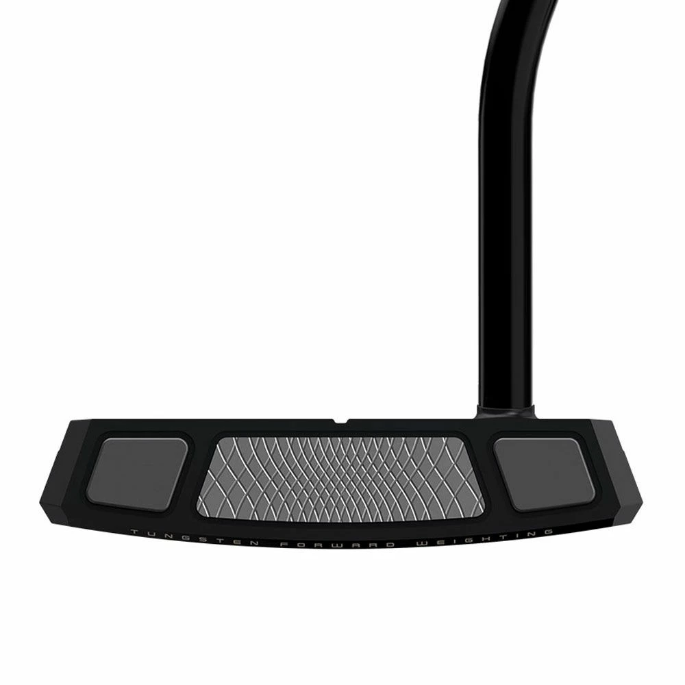 The flagship model of the Cleveland Golf Frontline Putter collection, the Frontline Elevado provides two stability wings and Tungsten Forward Weighting for improved consistency and accuracy on the greens. With the combination of an extreme centre of gravity and enhanced speed optimised face, Cleveland has produced a putter that uniquely maximises directional and speed consistency. Coupled with slick black cosmetics, great shapes and hosel options for different stroke types, Cleveland Golf says that ‘Frontline’ really is the whole package. With Frontline, the challenge for Cleveland Golf was creating a putter that’s powerful enough to counteract miss-hits and provide consistently straighter putts. The foundation of Frontline is Tungsten Forward Weighting, which places two Metal Injection Molded (MIM) tungsten weights in the face of the putter. Since the introduction of the mallet-style putter, most have had weights in the rear to increase stability on off-centre impacts, but this design places the centre of gravity in the back of the putter. Frontline does the opposite, bringing the centre of gravity forward for more accuracy on the greens. Frontline features Cleveland Golf’s Speed Optimized Face Technology (SOFT), which normalises ball speed across the face for consistent distance performance on every putt. Every model in Frontline features an individualised SOFT pattern to help mitigate speed and distance loss, notably on off-centre strikes. Frontline offers three different mallet options that include Cleveland’s 2135 Technology to help with proper alignment when standing over that crucial putt. Finally, Frontline offers two different hosel types to help provide a superior fit: single bend and slant neck. The single bend option is ideal for straight stroke types, while the slant neck option fits best for golfers with a slight arc stroke. Frontline comes standard with the Lamkin SINKFit Pistol Frontline grip and is available in 34′ and 35′ length options. The Frontline Elevado, Cero and Iso feature single bend or slant neck hosel options.