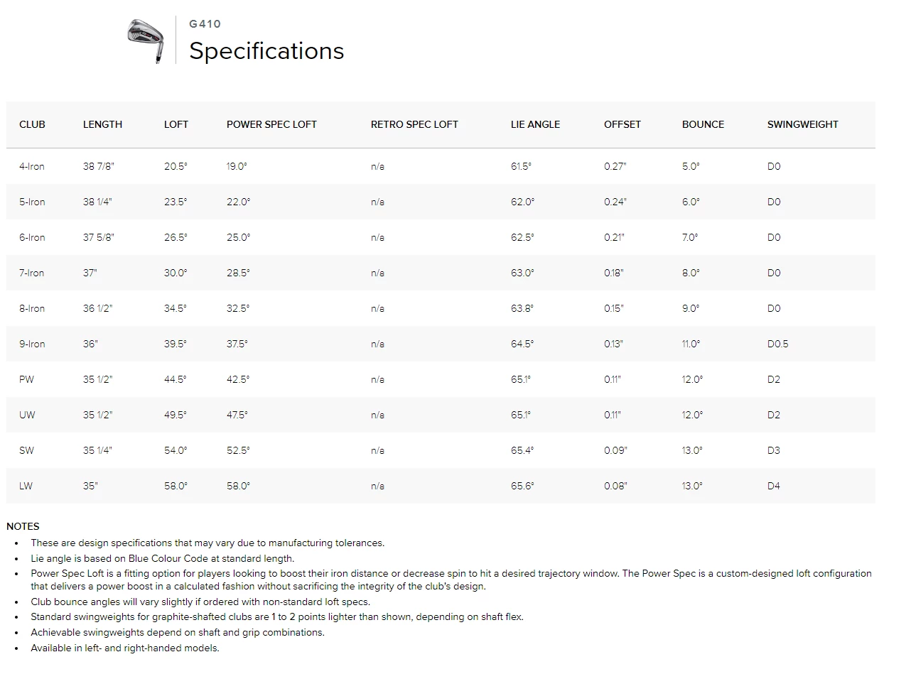 In the G410 iron, PING has built upon the huge success of their G400 range, the G410 irons have chiefly been designed with two things in mind: speed and forgiveness.