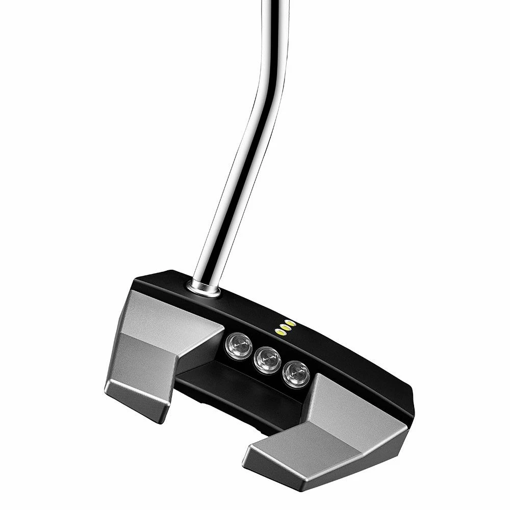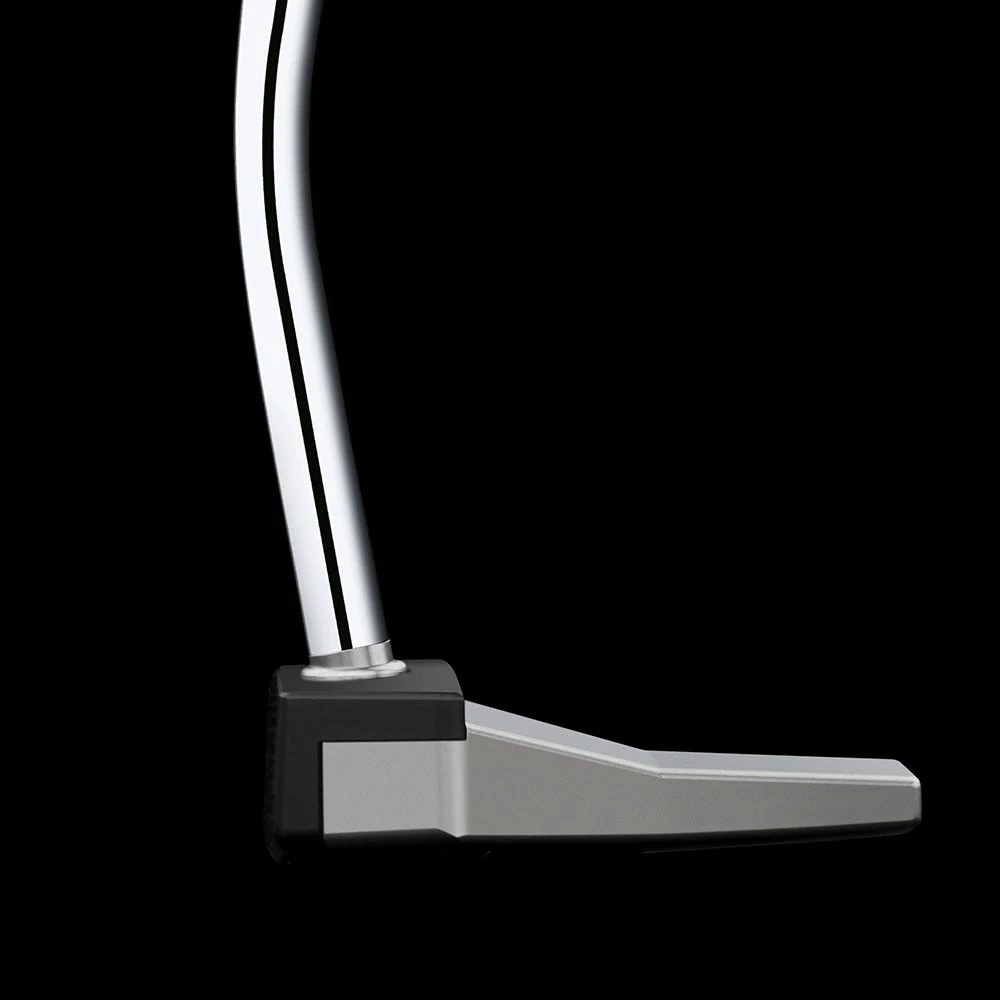 Wingback mallet with a single mid-bend shaft and aluminium face anodized in black that extends back into the stepped down flange, framed by stainless steel. The putter features three milled topline sight dots painted neon yellow and framed with polished aluminium which aims to provide a simple but effective alignment to the sweet spot.